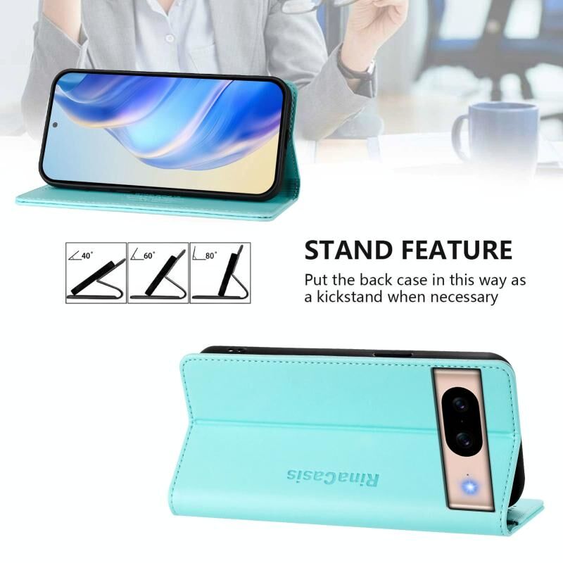 Θήκη τηλεφώνου δερμάτινη με μαγνητική απορρόφηση και προστασία RFID για Google Pixel 8a RC01 διπλού τύπου (Μέντα Πράσινο)