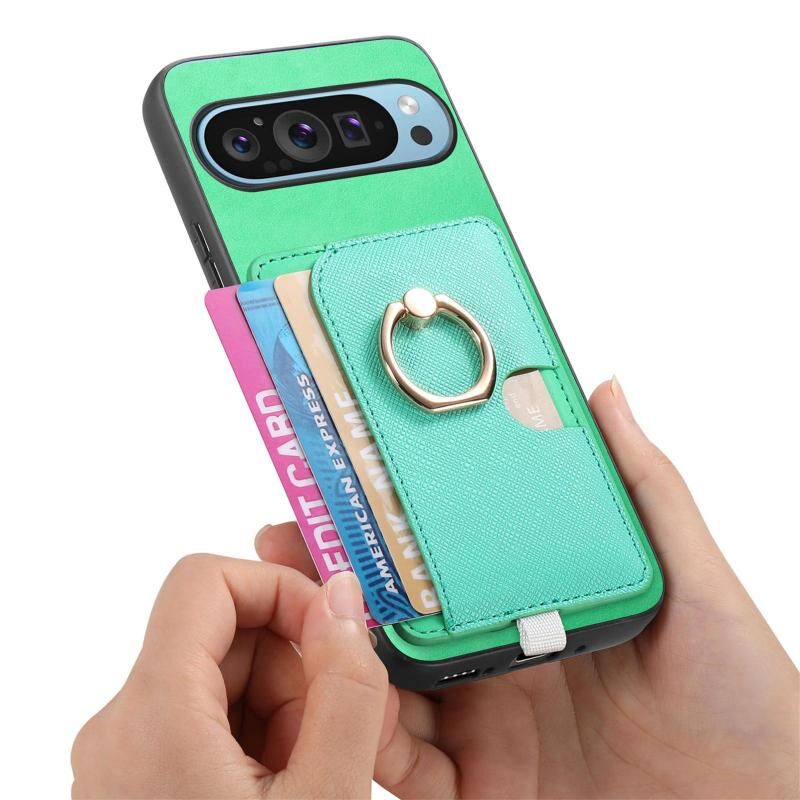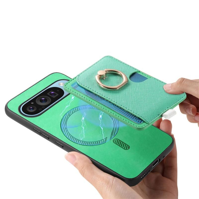 For Google Pixel 8a Retro Cross Leather Ring Side Insert Card Bag MagSafe Phone Case(Green)