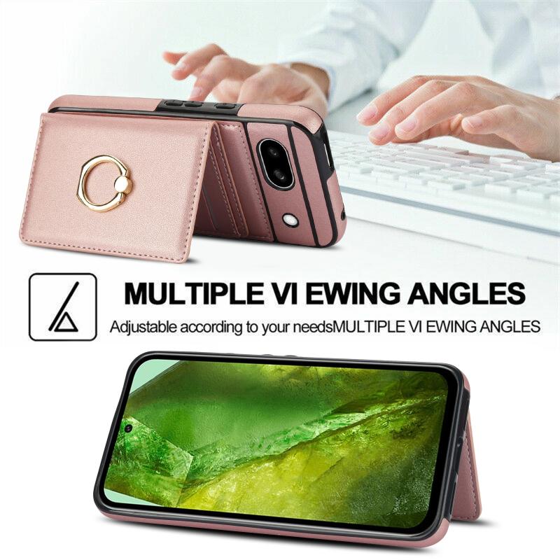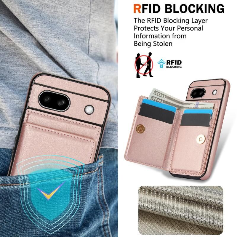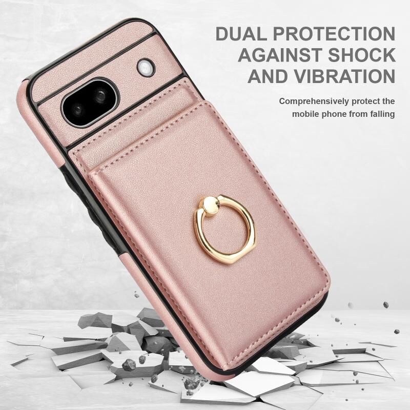 For Google Pixel 8a RFID Anti-theft Card Ring Holder Phone Case(Rose Gold)