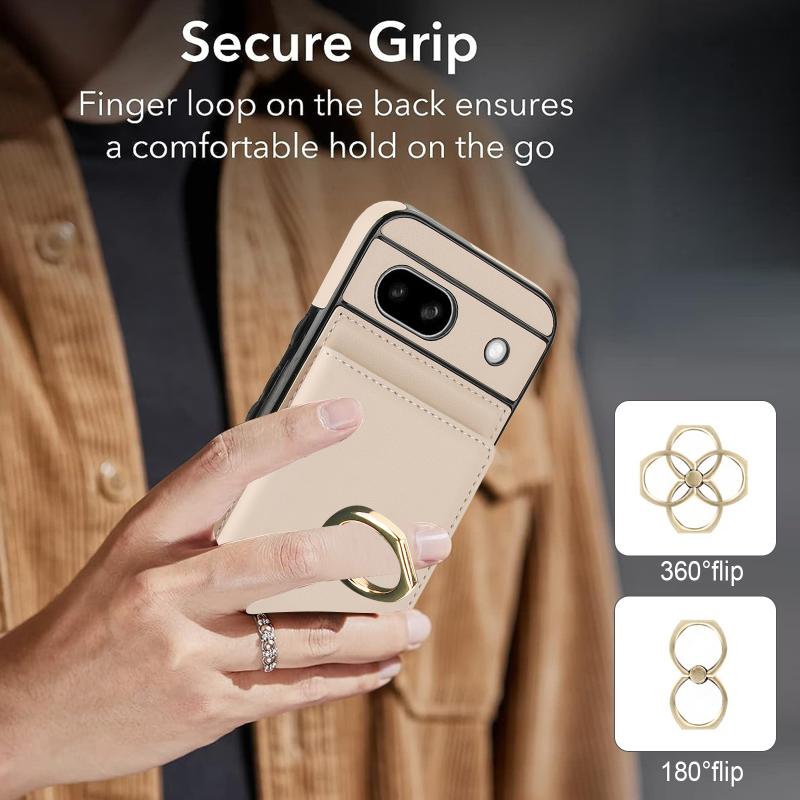 For Google Pixel 8a RFID Anti-theft Card Ring Holder Phone Case(White)