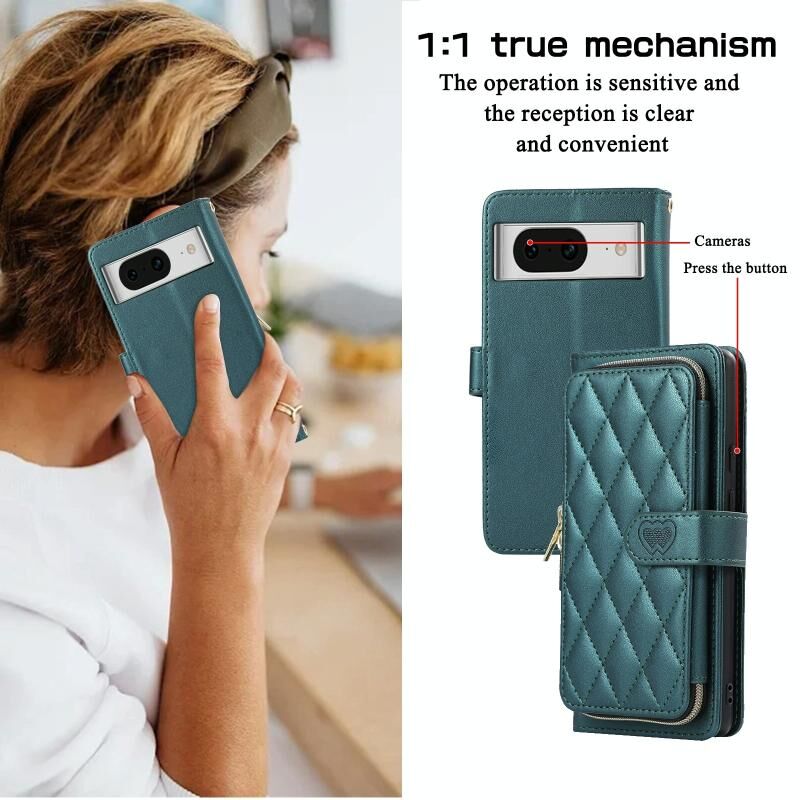 Για το Google Pixel 8a Ρομβοειδής πλήρης φερμουάρ πορτοφόλι δερμάτινη θήκη τηλεφώνου (πράσινο)