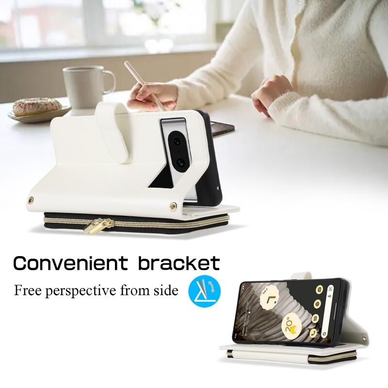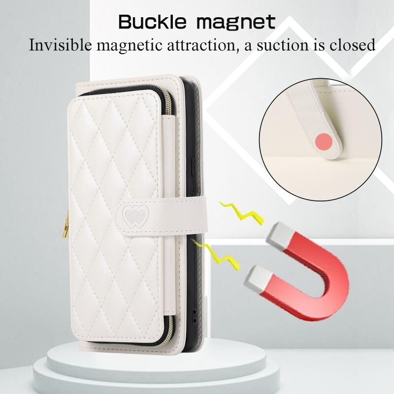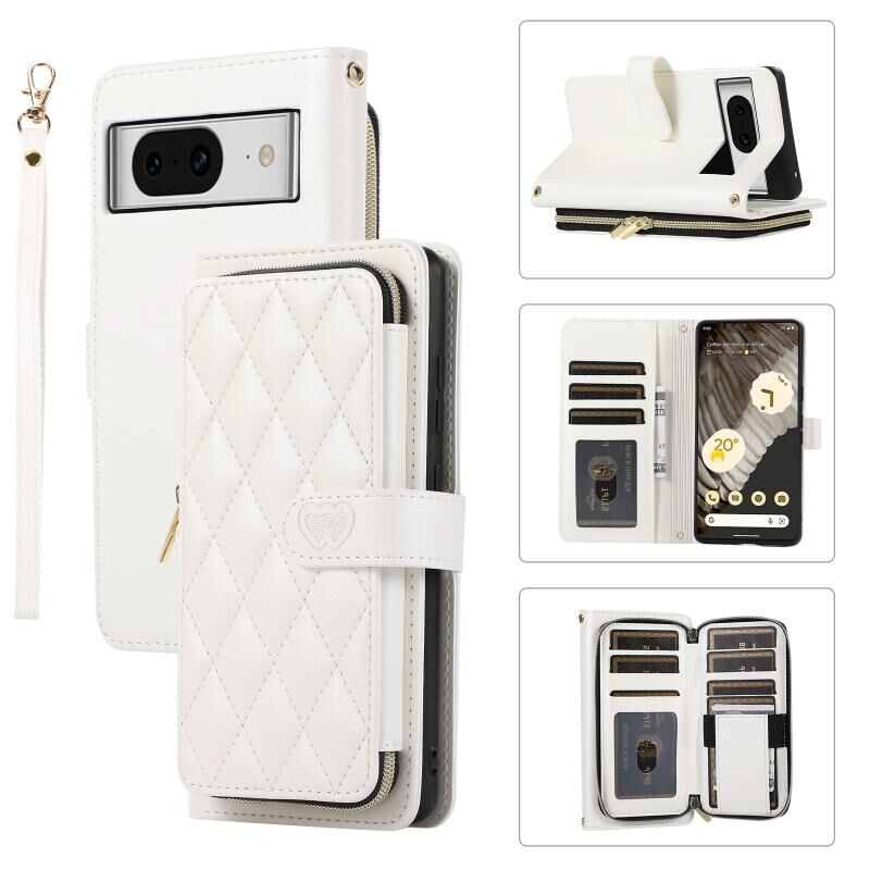 Για το Google Pixel 8a Ρομβοειδής πλήρης φερμουάρ πορτοφόλι δερμάτινη θήκη τηλεφώνου (λευκό)