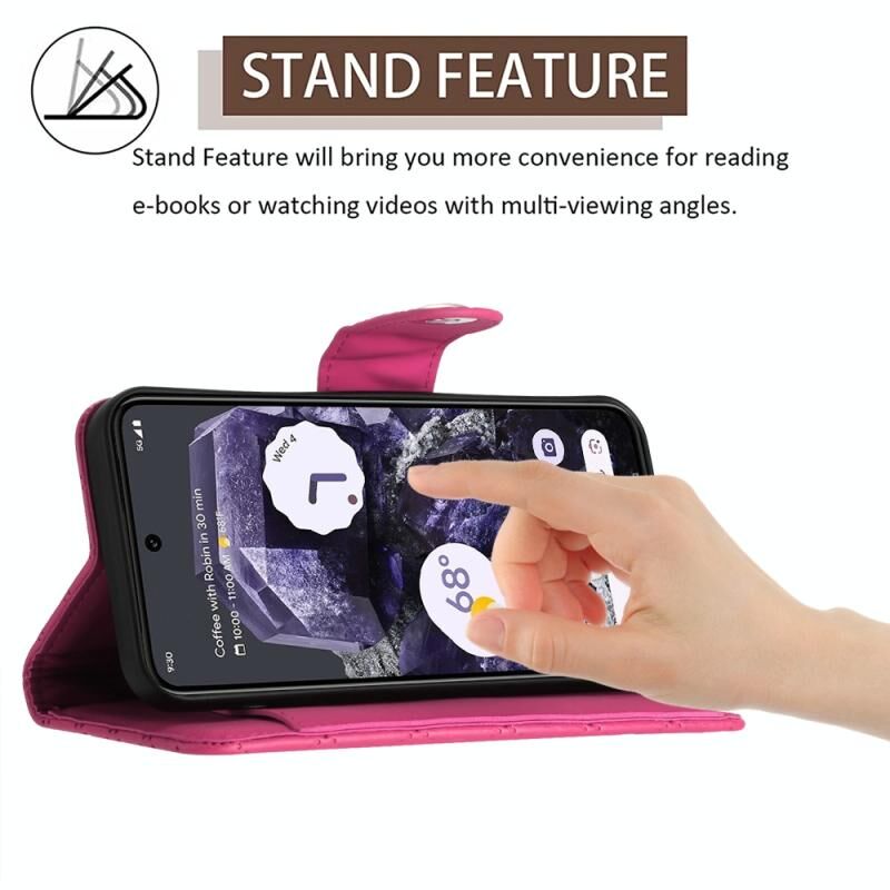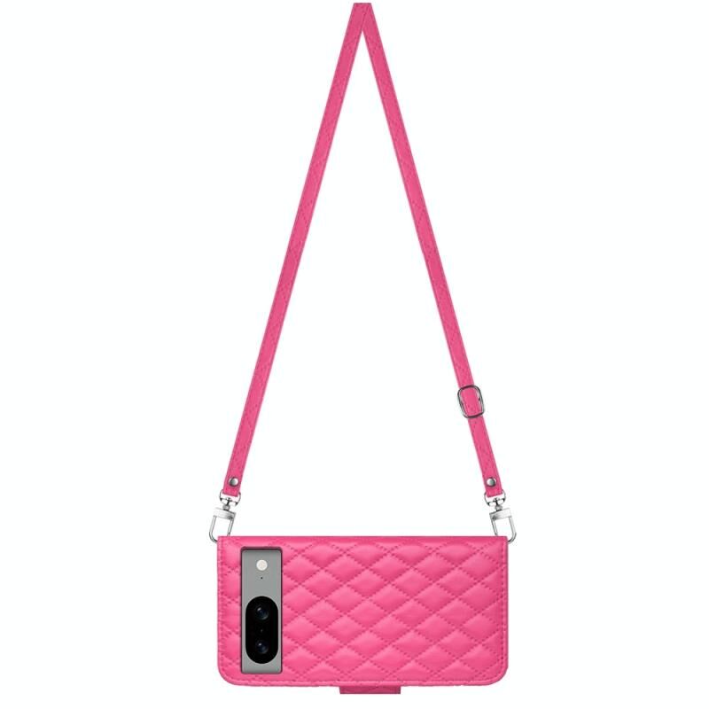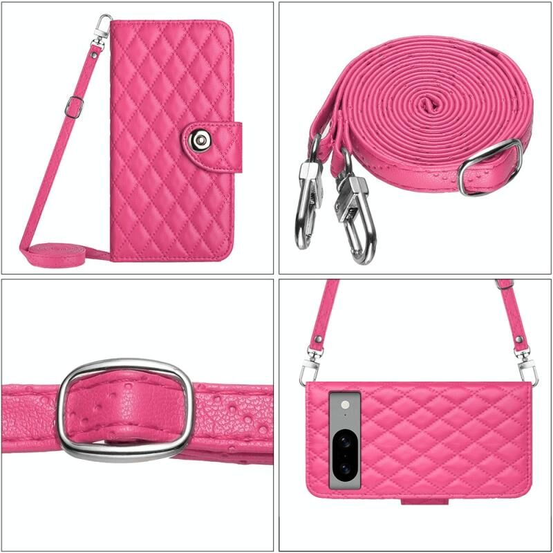 Για το Google Pixel 8a Ρομβική υφή Flip δερμάτινη θήκη τηλεφώνου με μακρύ κορδόνι (Rose Red)