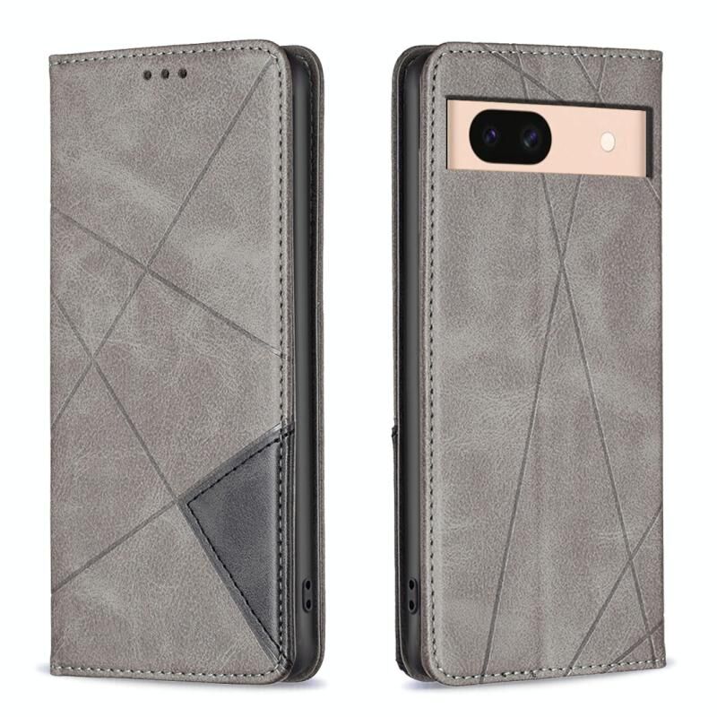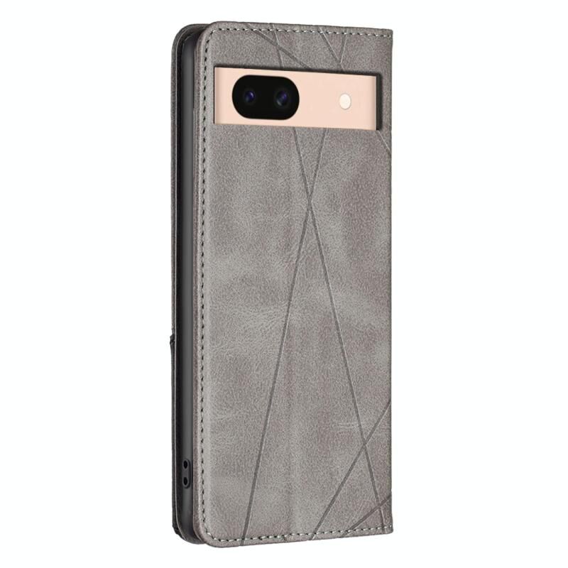 Για το Google Pixel 8a Rhombus Texture μαγνητική δερμάτινη θήκη τηλεφώνου (γκρι)
