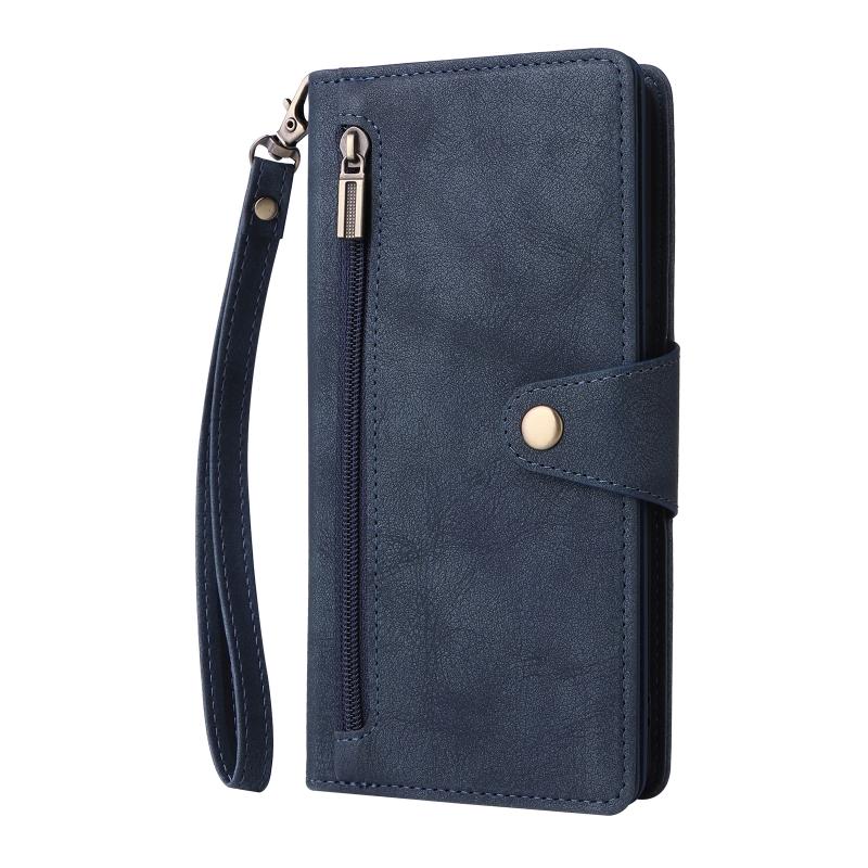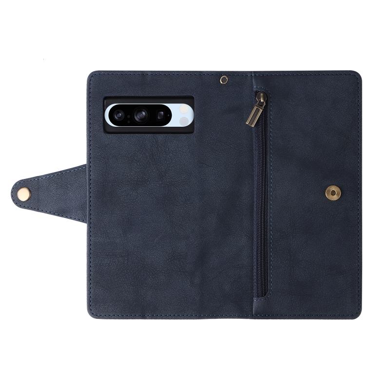 For Google Pixel 8a Rivet Buckle 9 Cards Three Fold Leather Phone Case(Blue)