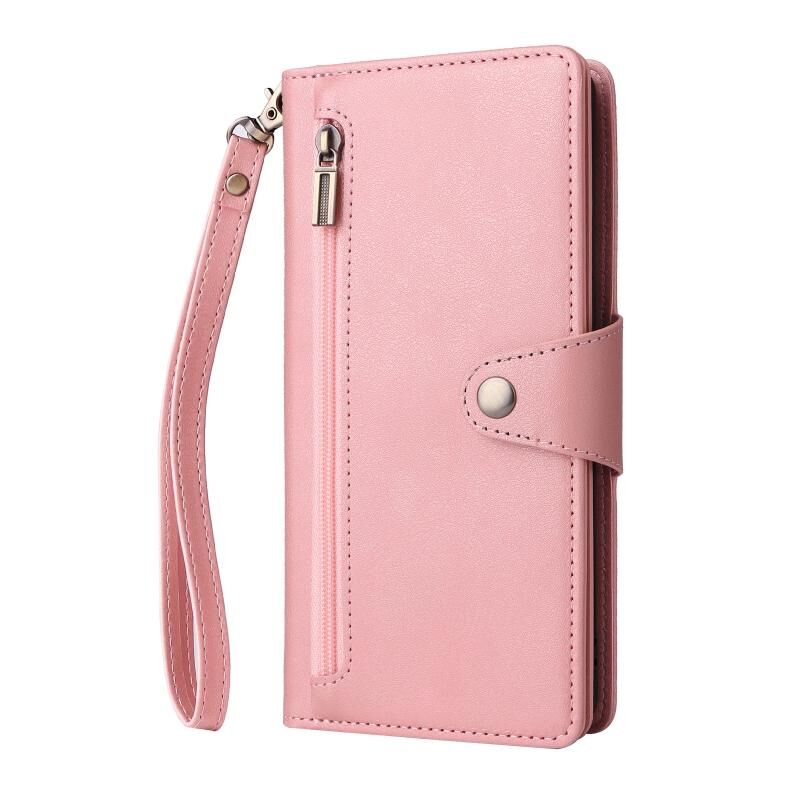 For Google Pixel 8a Rivet Buckle 9 Cards Three Fold Leather Phone Case(Rose Gold)