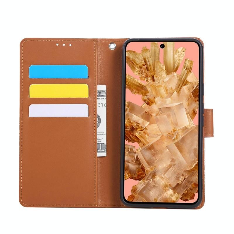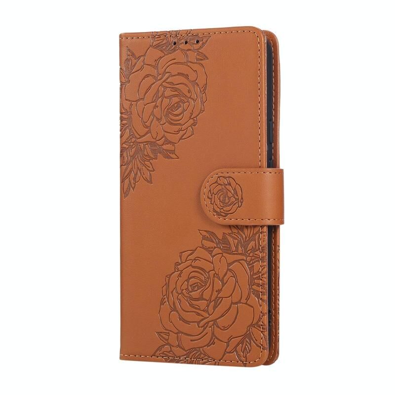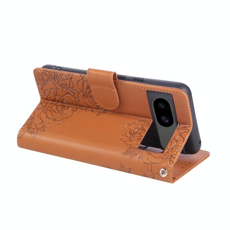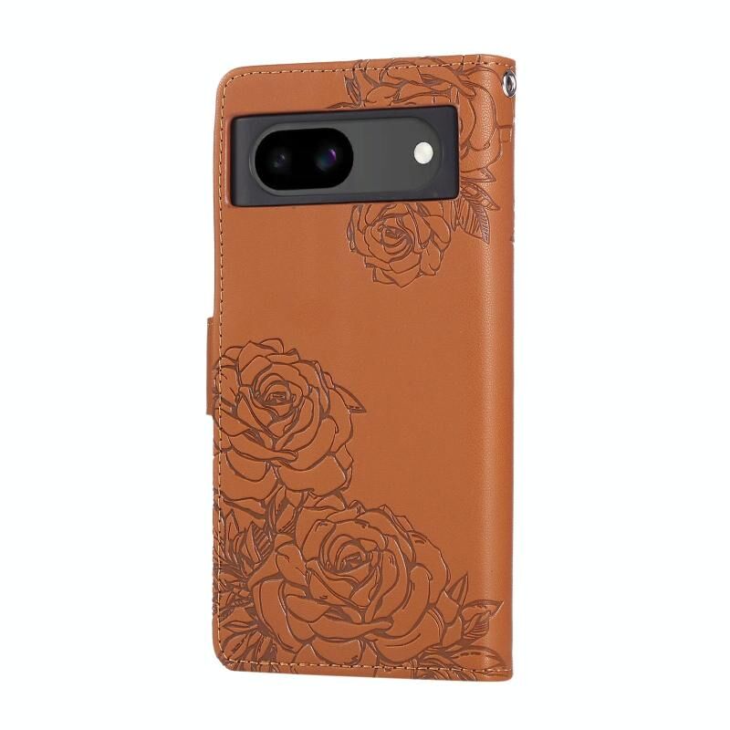 For Google Pixel 8a Rose Flower Embossed 3-Card Slots Leather Phone Case(Brown)