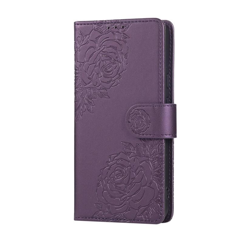 For Google Pixel 8a Rose Flower Embossed 3-Card Slots Leather Phone Case(Deep Purple)