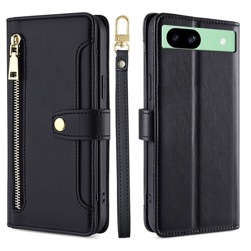 Για Google Pixel 8a Πρόβατο υφή Cross-body φερμουάρ πορτοφόλι δερμάτινη θήκη τηλεφώνου (μαύρο)