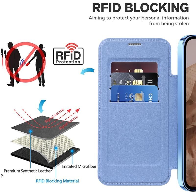 Θήκη τηλεφώνου δερμάτινη με προστασία MagSafe, RFID και αντι-κλοπής για Google Pixel 8a (Μπλε)