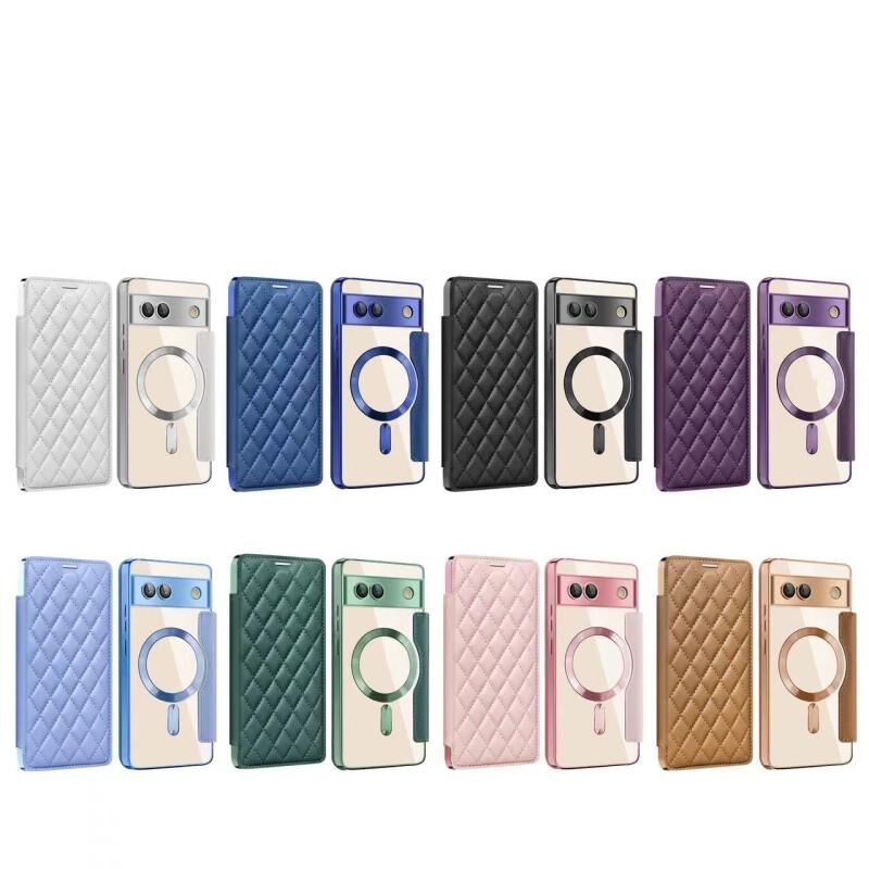 Θήκη τηλεφώνου από δέρμα σε σχήμα ρόμβου με προστασία MagSafe, RFID και αντι-κλοπής για Google Pixel 8a (Μωβ της Νύχτας)
