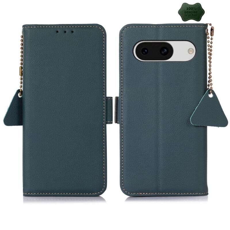 Θήκη τηλεφώνου από γνήσιο δέρμα TJ με μαγνητικό κλείσιμο για Google Pixel 8A (Πράσινο)