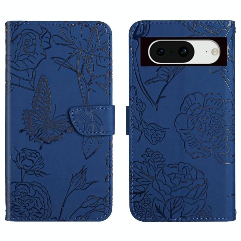 Για το Google Pixel 8a Skin Feel Πεταλούδα ανάγλυφο Flip υπόθεση τηλεφώνου δέρμα (μπλε)