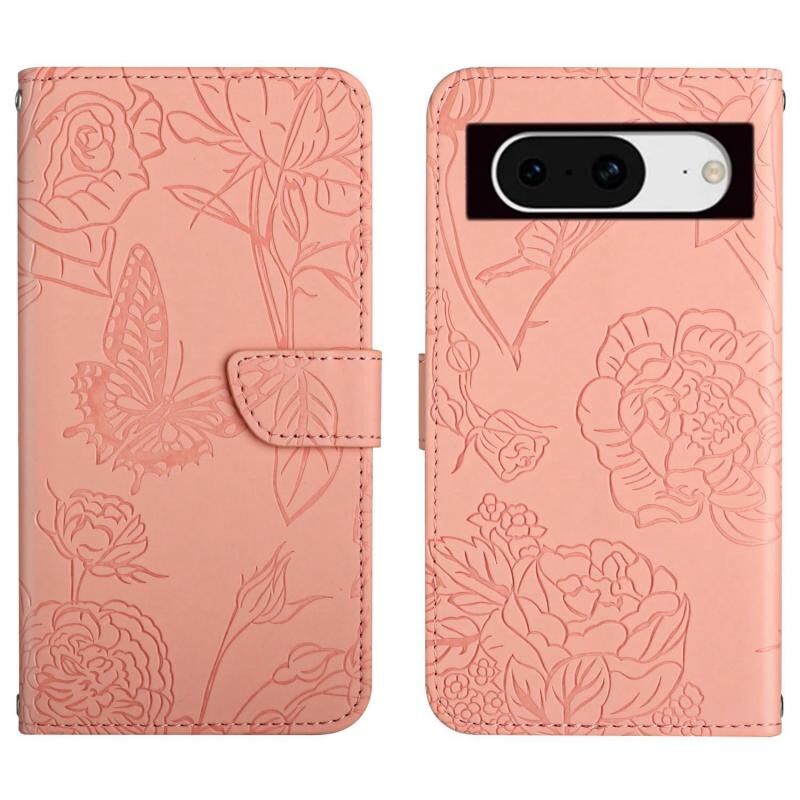 Για το Google Pixel 8a Skin Feel Πεταλούδα ανάγλυφο Flip υπόθεση τηλεφώνου δέρμα (ροζ)