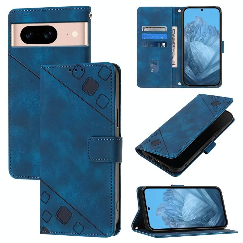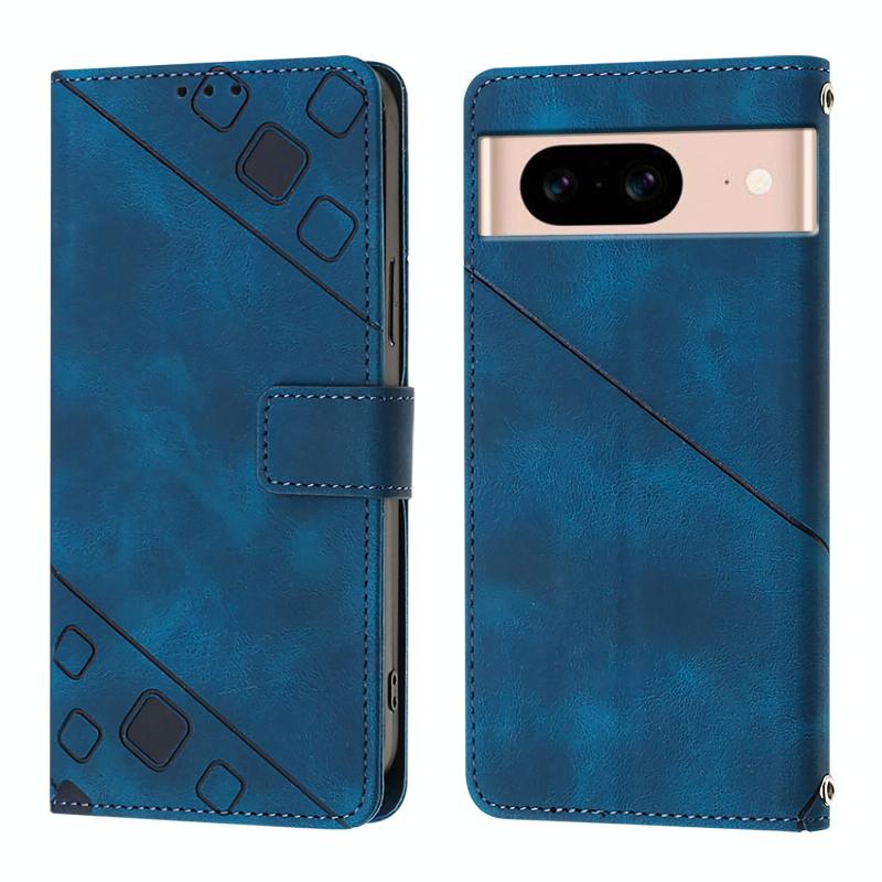 For Google Pixel 8a Skin-feel Embossed Leather Phone Case(Blue)