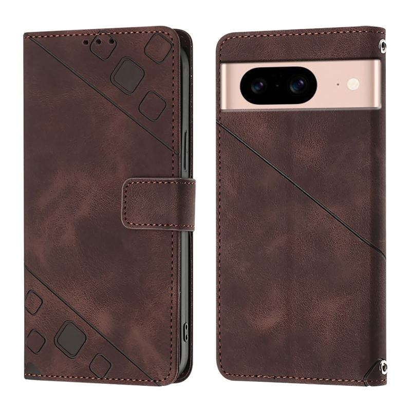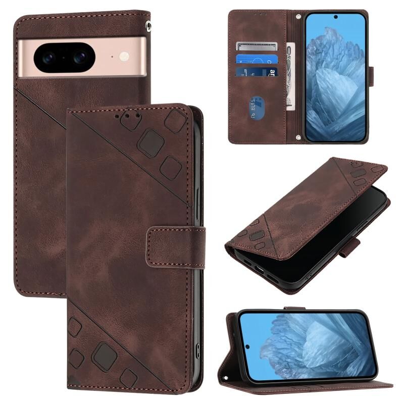 For Google Pixel 8a Skin-feel Embossed Leather Phone Case(Brown)