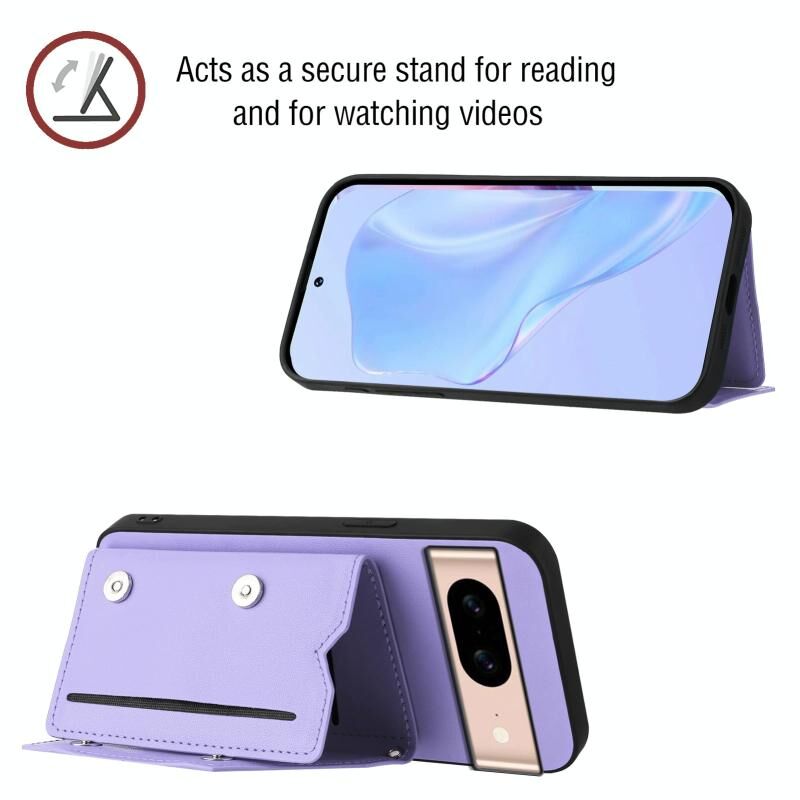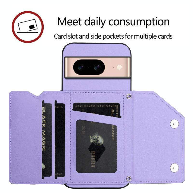 Για το Google Pixel 8A Skin Feel Τέσσερις υποδοχές καρτών υπόθεση τηλεφώνου με λουράκι καρπού (μωβ)