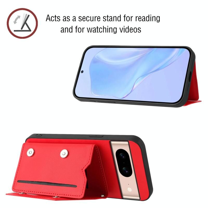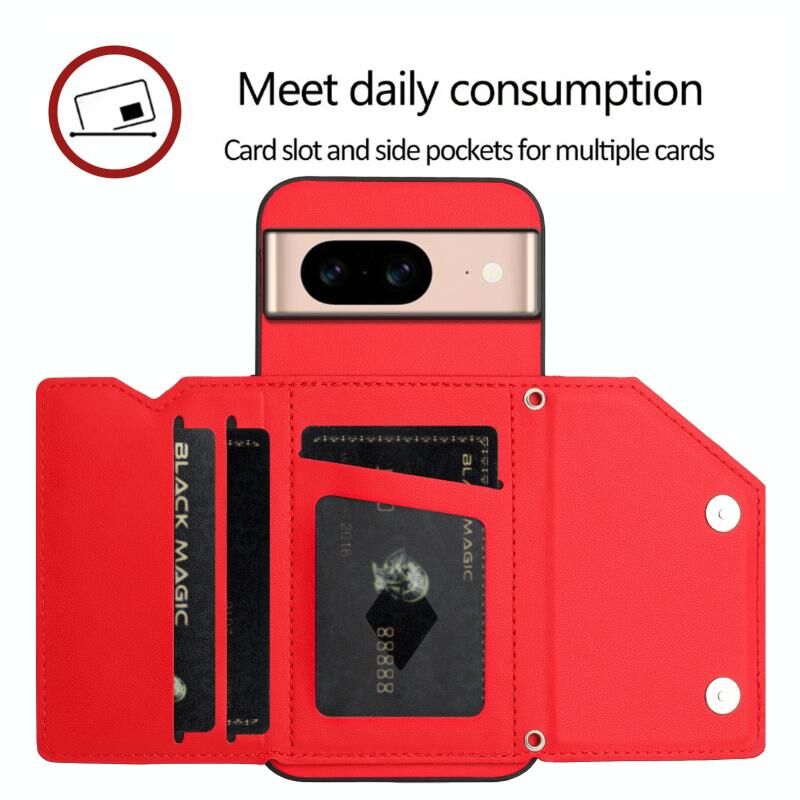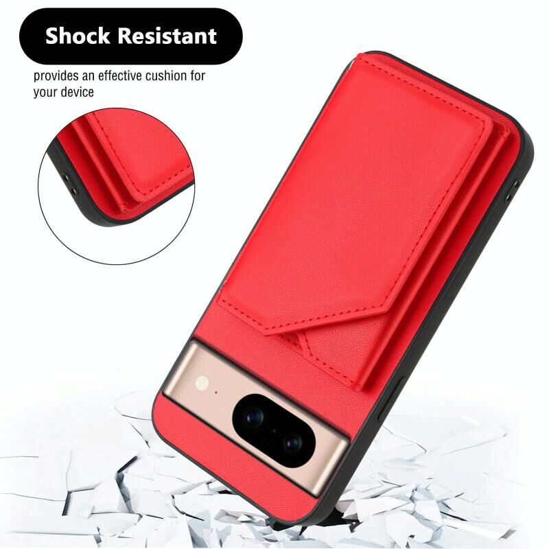 Για το Google Pixel 8A Skin Feel Τέσσερις υποδοχές καρτών υπόθεση τηλεφώνου με λουράκι καρπού (κόκκινο)