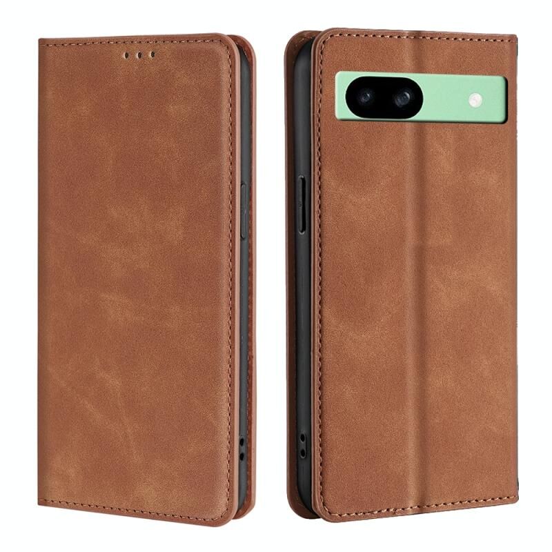 Για το Google Pixel 8a Skin Feel μαγνητική δερμάτινη θήκη τηλεφώνου (ανοιχτό καφέ)