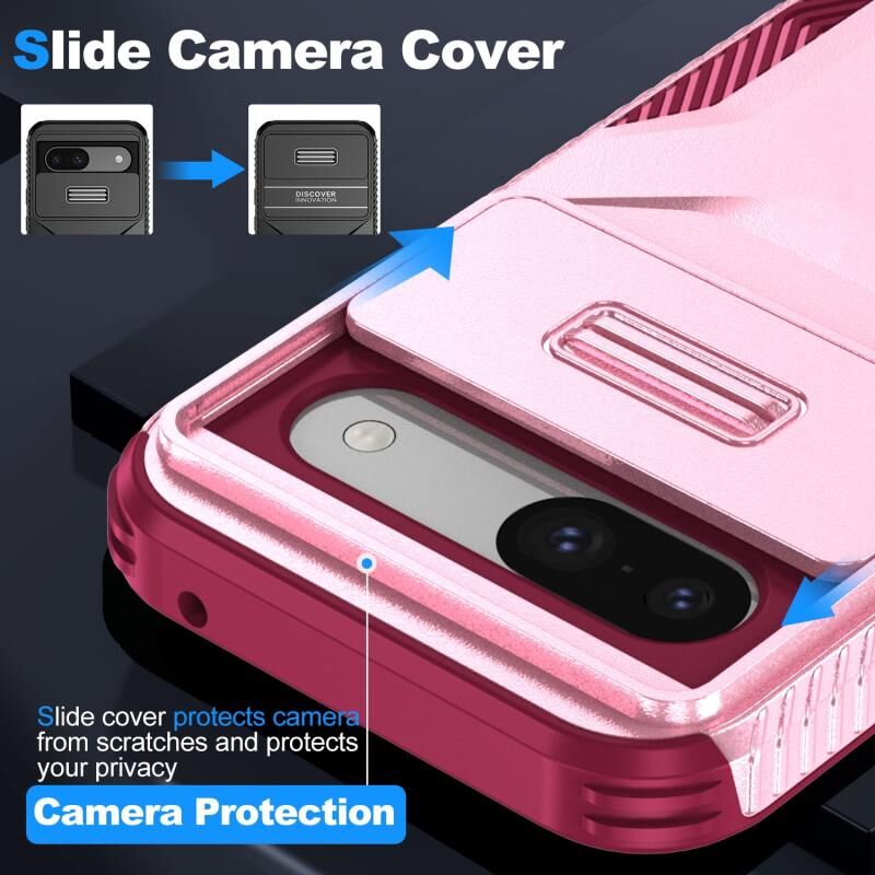 Για το Google Pixel 8a Συρόμενη θήκη τηλεφώνου Camshield (ροζ + ροζ κόκκινο)