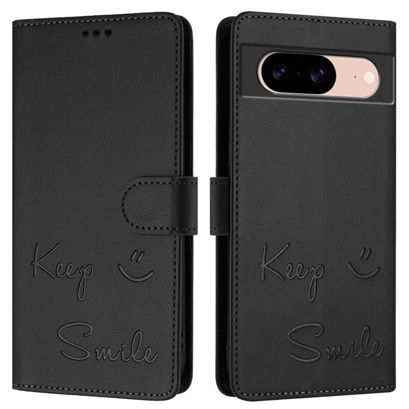 Για Google Pixel 8a Χαμόγελο ανάγλυφο RFID δερμάτινη θήκη τηλεφώνου (Μαύρο)