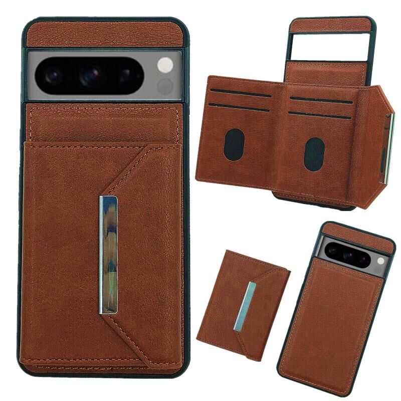 Για το Google Pixel 8a Αμιγές χρώμα μέταλλο πόρπη κάρτα υποδοχές τσάντα υπόθεση τηλεφώνου (καφέ)