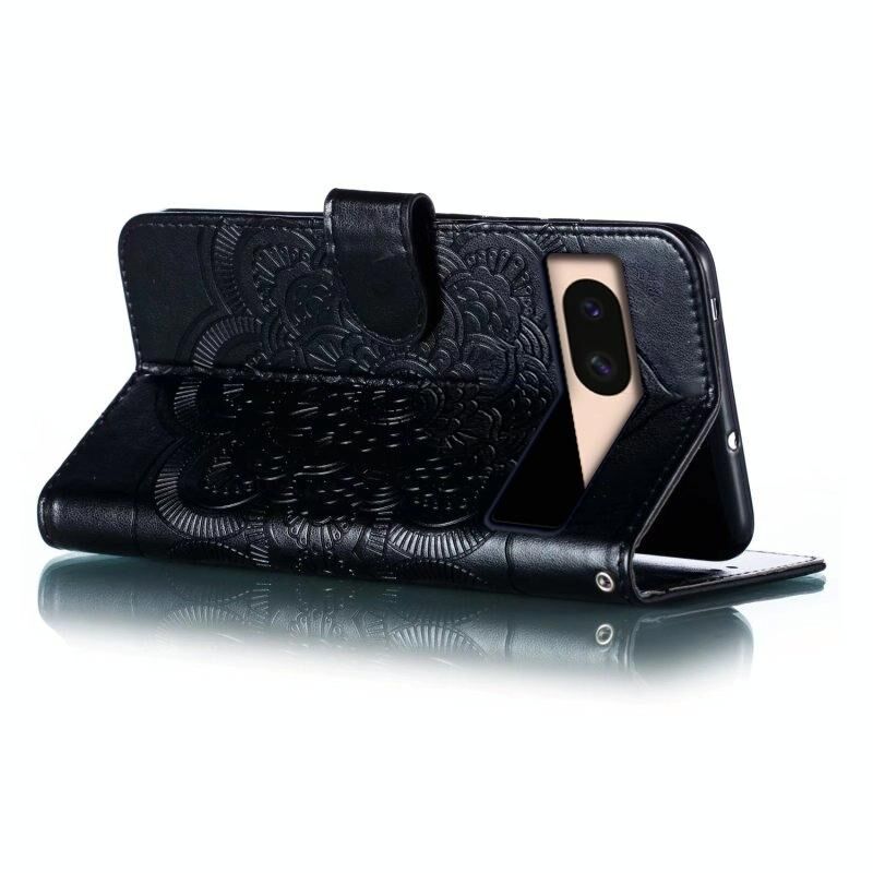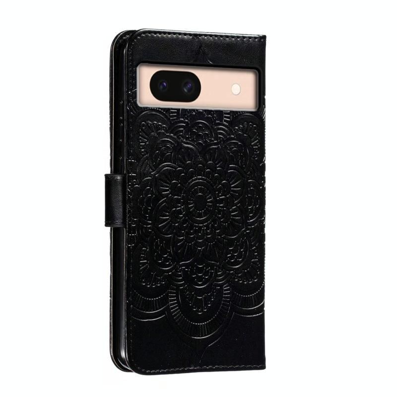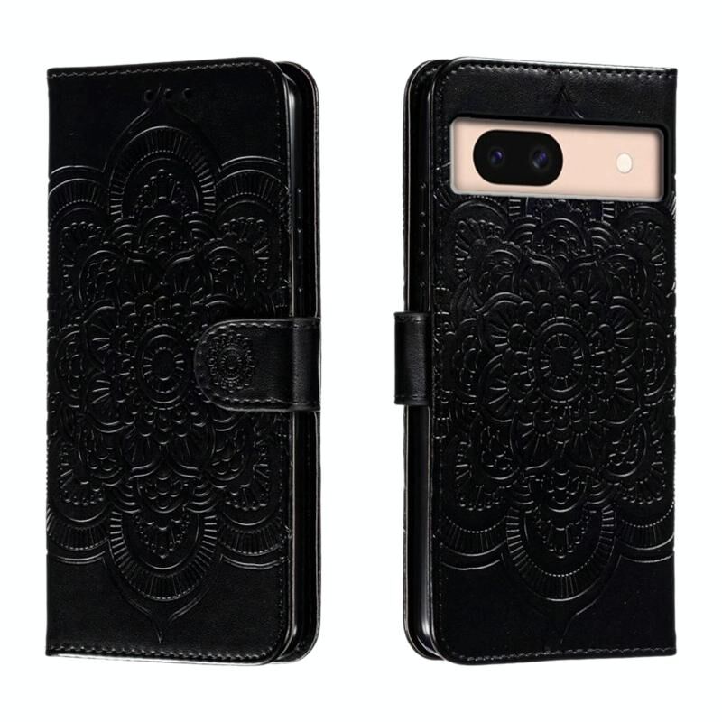 Για το Google Pixel 8A Sun Mandala ανάγλυφο μοτίβο τηλέφωνο δερμάτινη θήκη (μαύρο)