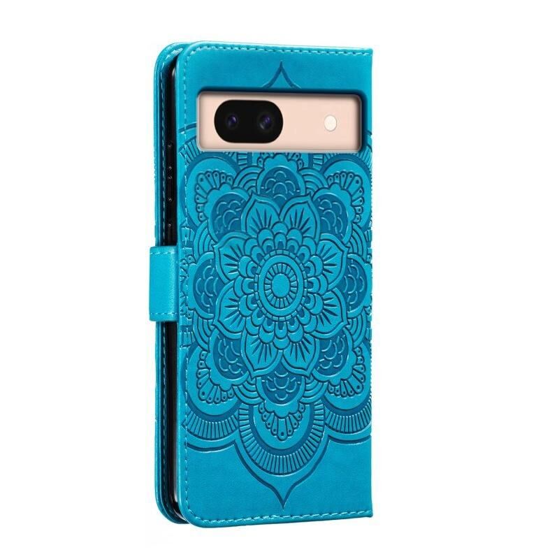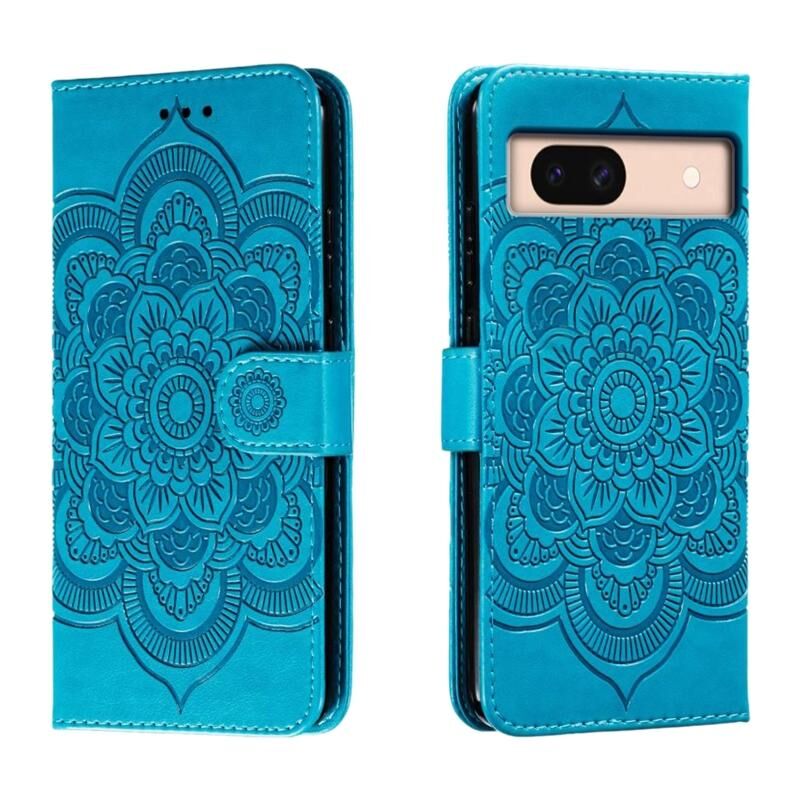 Για το Google Pixel 8A Sun Mandala ανάγλυφο μοτίβο τηλέφωνο δερμάτινη θήκη (μπλε)