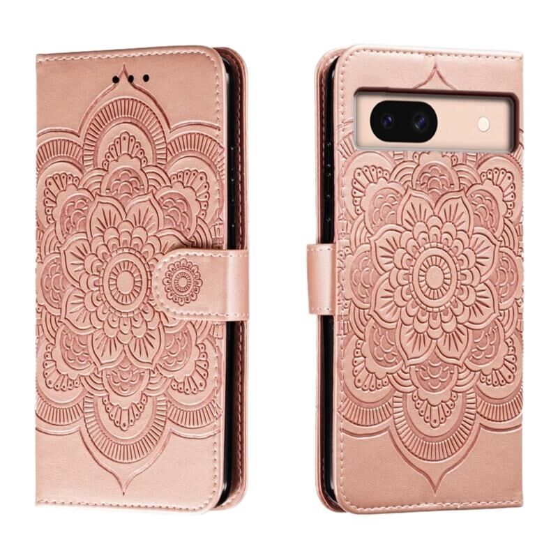 Για το Google Pixel 8A Sun Mandala ανάγλυφο μοτίβο τηλέφωνο δερμάτινη θήκη (Rose Gold)