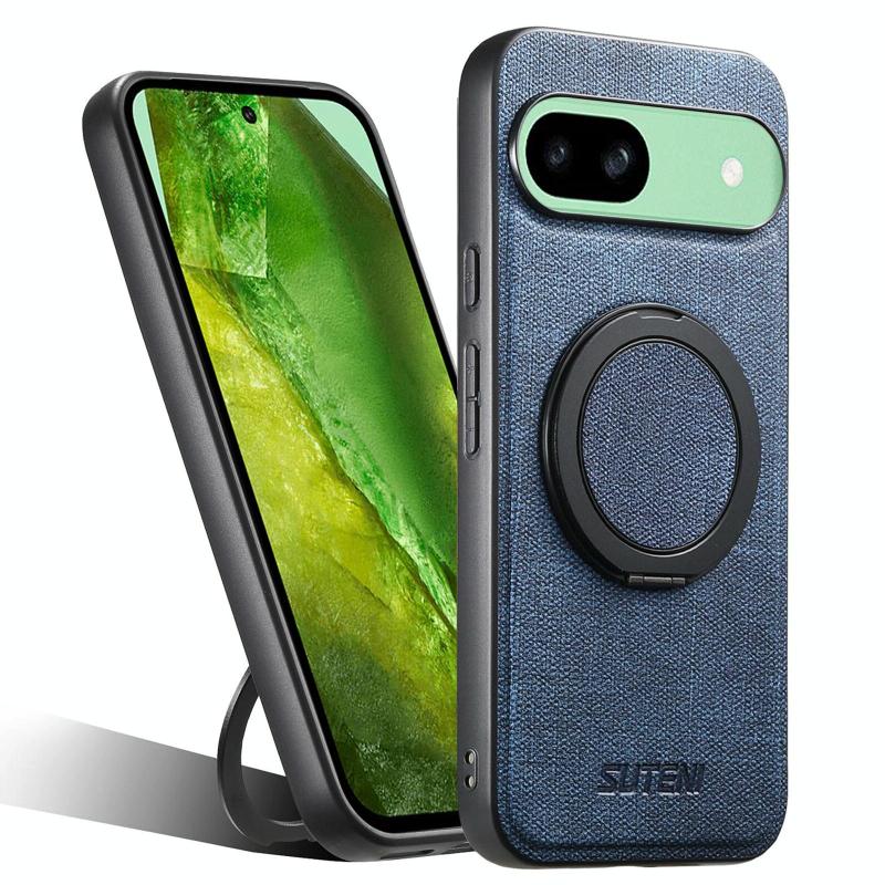For Google Pixel 8a Suteni G3 360 Rotation Holder MagSafe Denim Leather Back Phone Case(Blue) (Suteni)