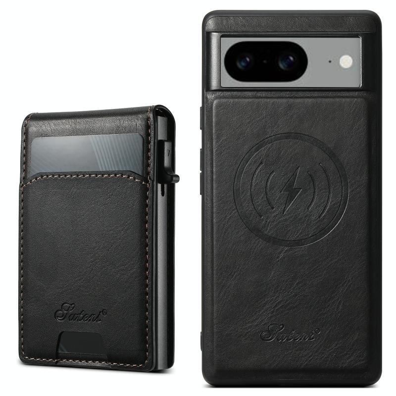 For Google Pixel 8a Suteni H19 Oil Wax 2-in-1 MagSafe Removable Card Box Back Phone Case(Black) (Suteni)