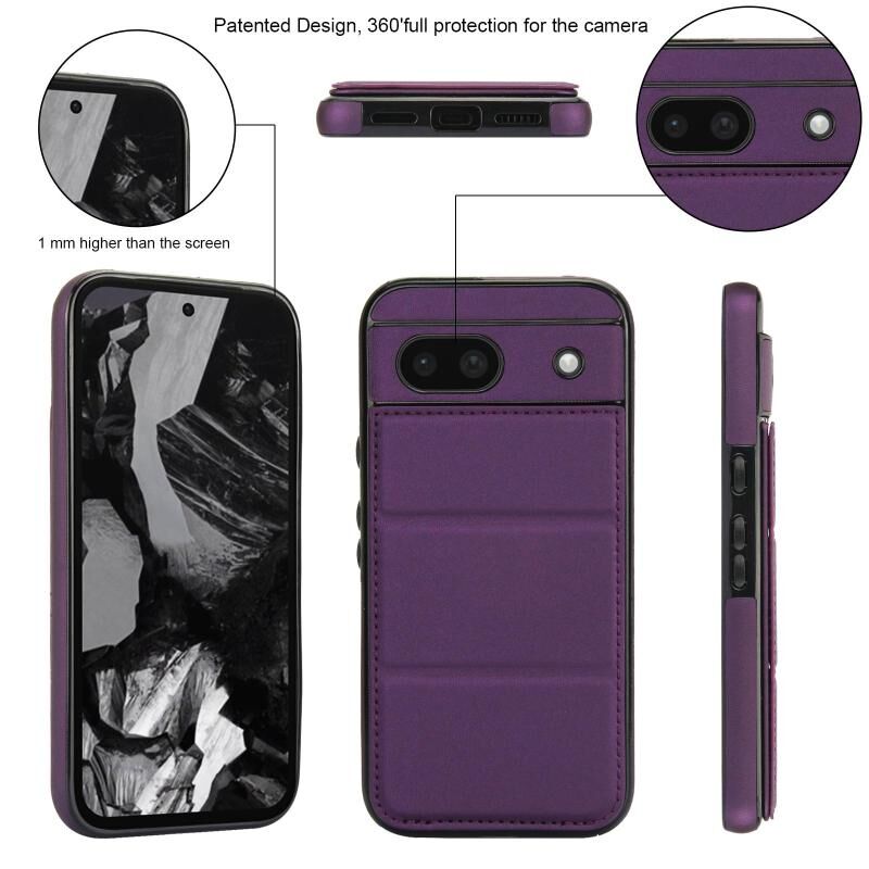 For Google Pixel 8a Tri-fold Holder Leather Phone Case with Card Slot(Dark Purple)