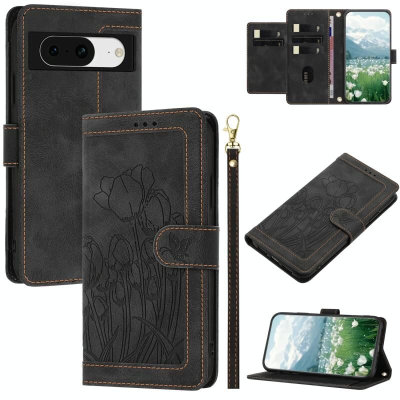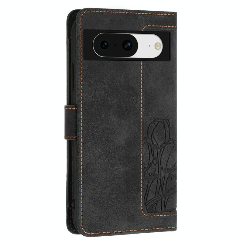 Θήκη τηλεφώνου από δέρμα με ανάγλυφα τουλίπες για Google Pixel 8a με κορδόνι (Ροζ)
