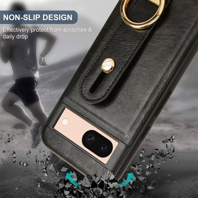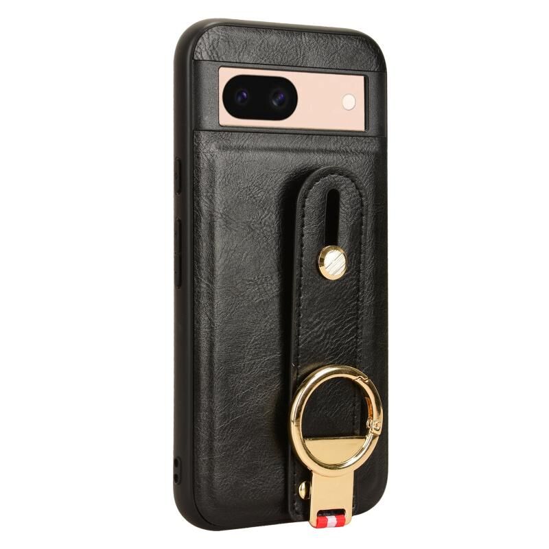 Για Google Pixel 8a Wristband δέρμα πίσω θήκη τηλεφώνου (μαύρο)