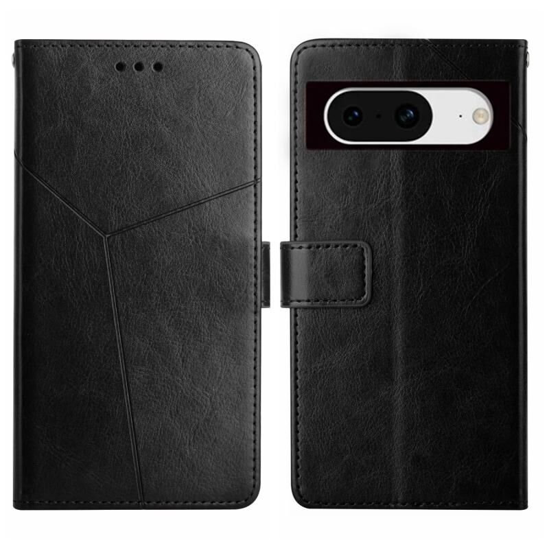 Για το Google Pixel 8a Y-σχήμα μοτίβο Flip δέρμα τηλέφωνο υπόθεση (μαύρο)