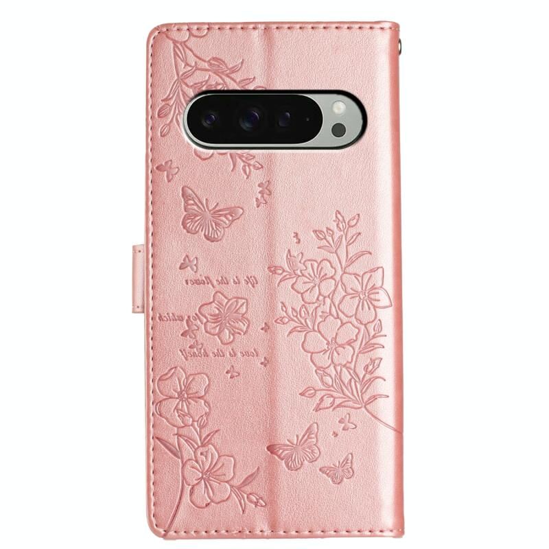 Θήκη τηλεφώνου από δέρμα με πεταλούδες και λουλούδια για Google Pixel 9 / 9 Pro (Χρυσό)