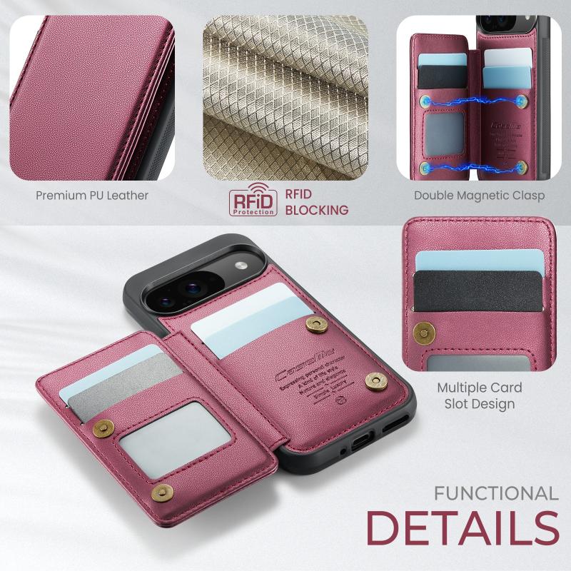 For Google Pixel 9 / 9 Pro CaseMe C22 Card Slots Holder RFID Anti-theft Phone Case(Wine) (CaseMe)