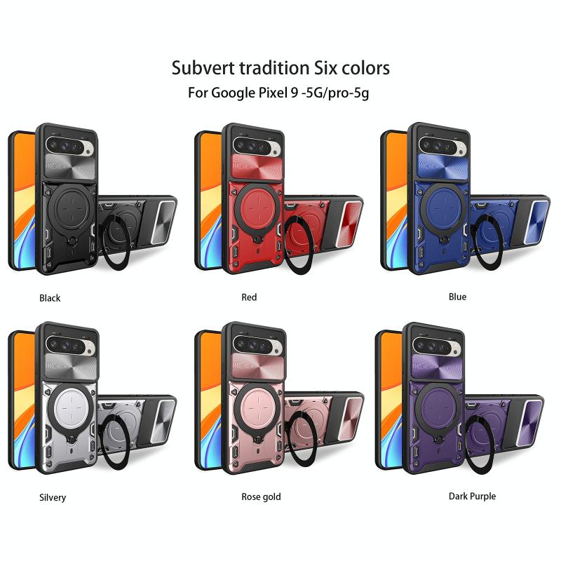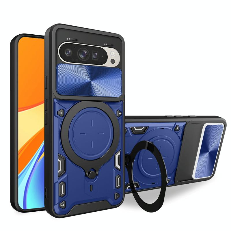 For Google Pixel 9 / 9 Pro CD Texture Sliding Camshield Magnetic Holder Phone Case(Blue)