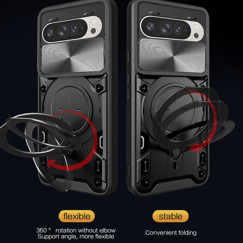 For Google Pixel 9 / 9 Pro CD Texture Sliding Camshield Magnetic Holder Phone Case(Pink)
