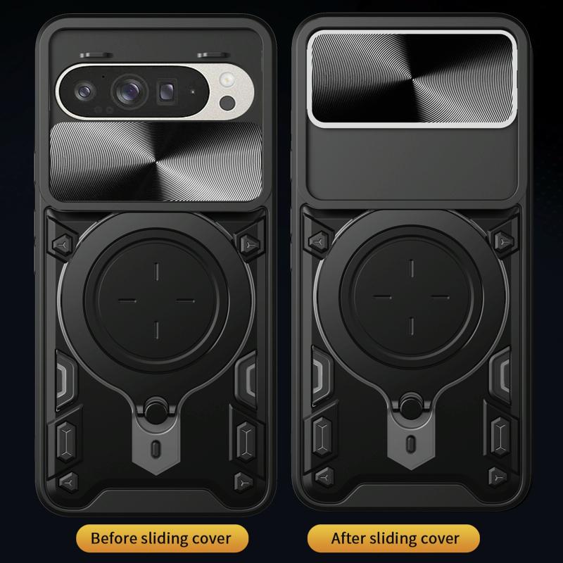 For Google Pixel 9 / 9 Pro CD Texture Sliding Camshield Magnetic Holder Phone Case(Purple)