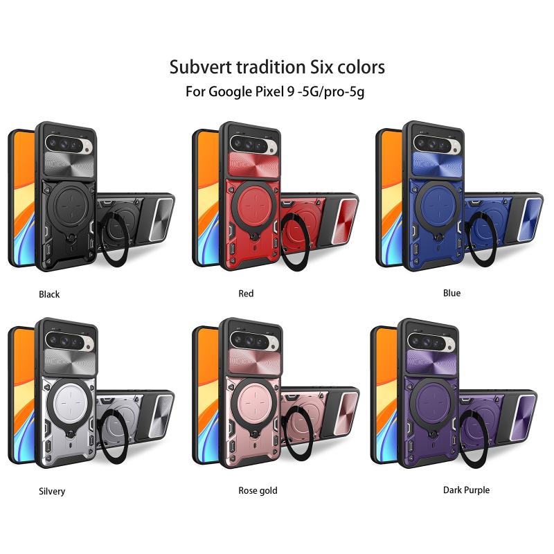 For Google Pixel 9 / 9 Pro CD Texture Sliding Camshield Magnetic Holder Phone Case(Silver)