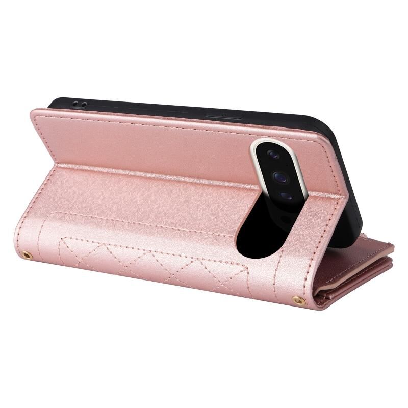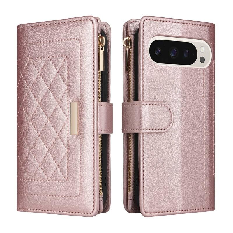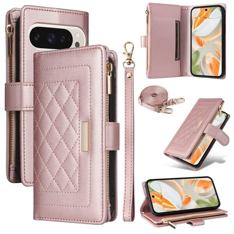 Για το Google Pixel 9 / 9 Pro Crossbody φερμουάρ πορτοφόλι ρόμβος δερμάτινη θήκη τηλεφώνου (ροζ χρυσό)