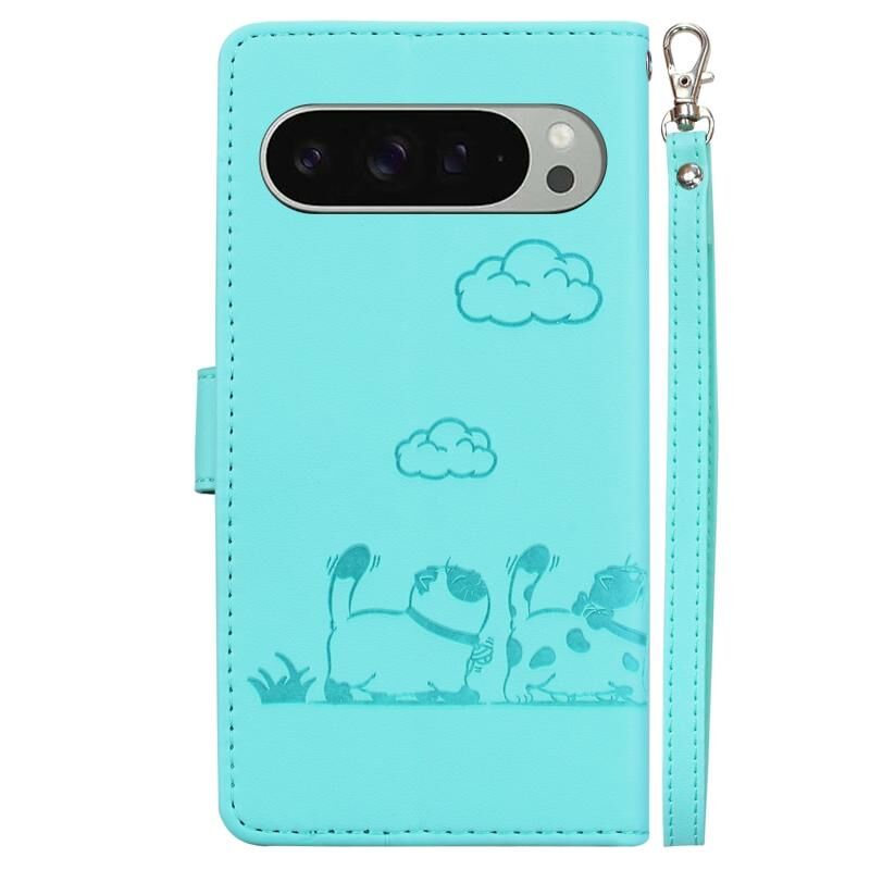 For Google Pixel 9 / 9 Pro Cute Cats RFID Leather Phone Case(Green)