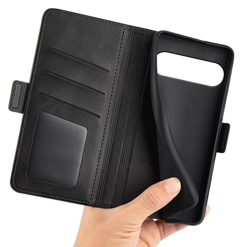 Για Google Pixel 9 / 9 Pro διπλής όψης μαγνητική πόρπη οριζόντια Flip δέρμα τηλέφωνο υπόθεση (μαύρο)