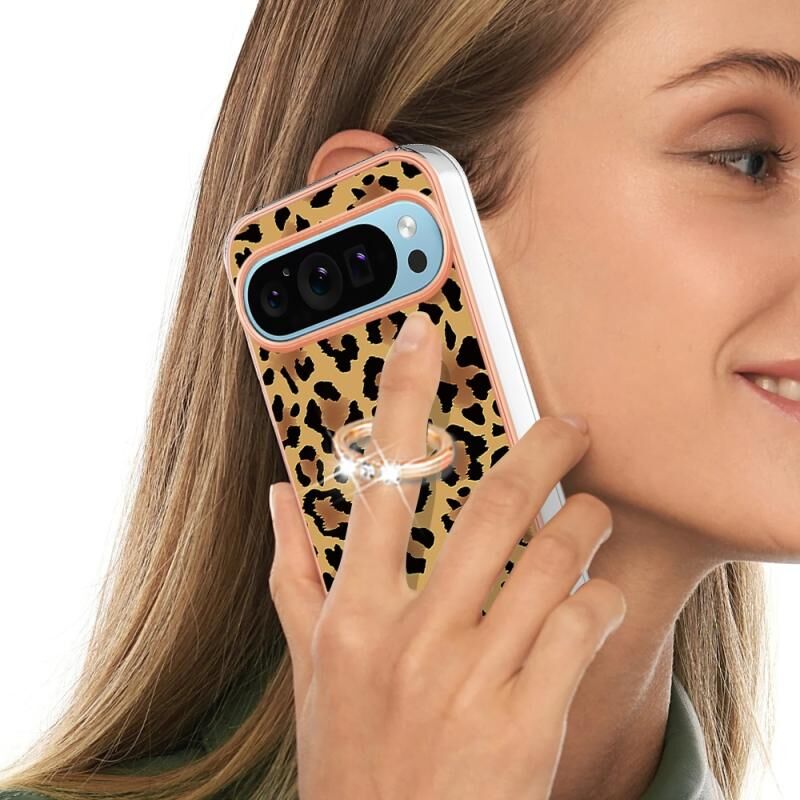 Θήκη τηλεφώνου με δακτύλιο στήριξης και ηλεκτρολυτική επιμετάλλωση διπλής όψης IMD για Google Pixel 9 / 9 Pro (εκτύπωση λεοπάρδαλης)