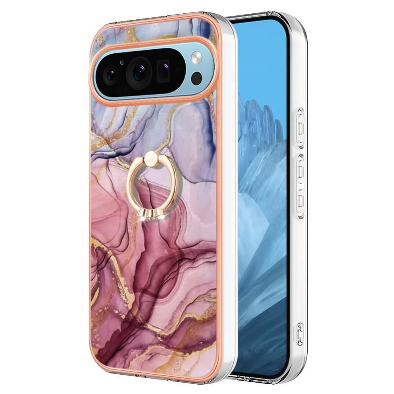 Θήκη τηλεφώνου με δακτύλιο για Google Pixel 9 / 9 Pro, με ηλεκτρολυτική μαρμάρινη επένδυση IMD διπλής όψης (Μωβ 016)