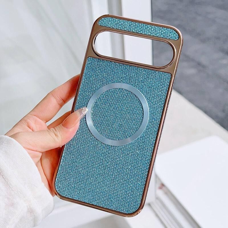 For Google Pixel 9 / 9 Pro Electroplating PC Glitter Grain MagSafe Phone Case(Blue)