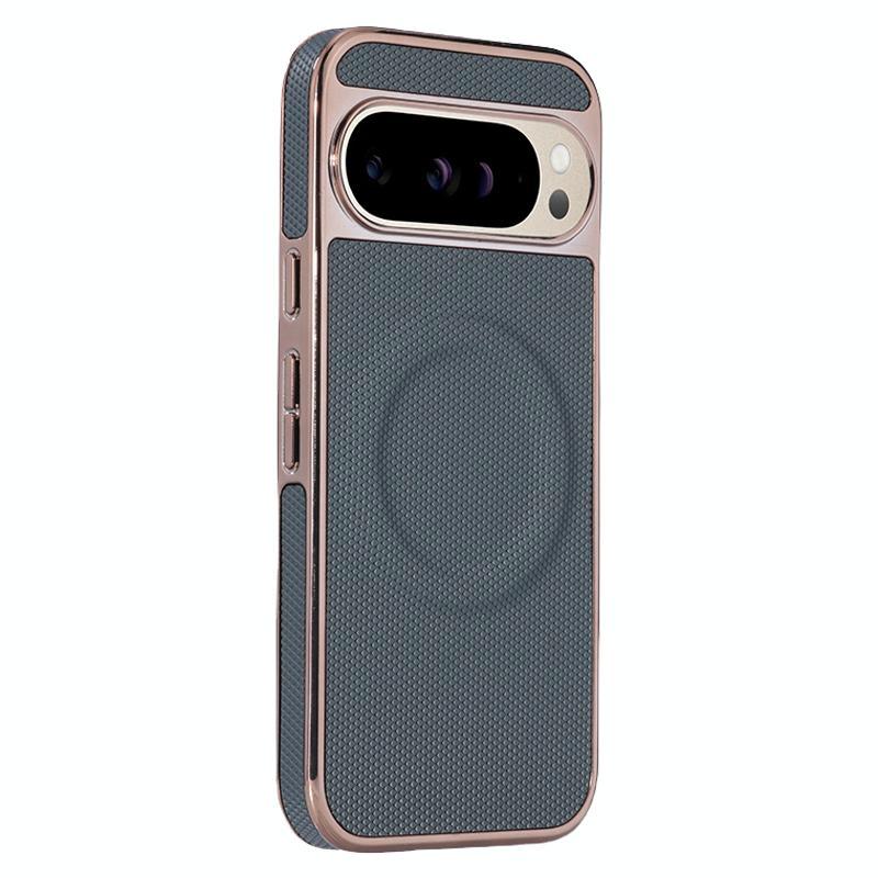 For Google Pixel 9 / 9 Pro Electroplating Soft Side Sticker Leather MagSafe Phone Case(Dark Green)