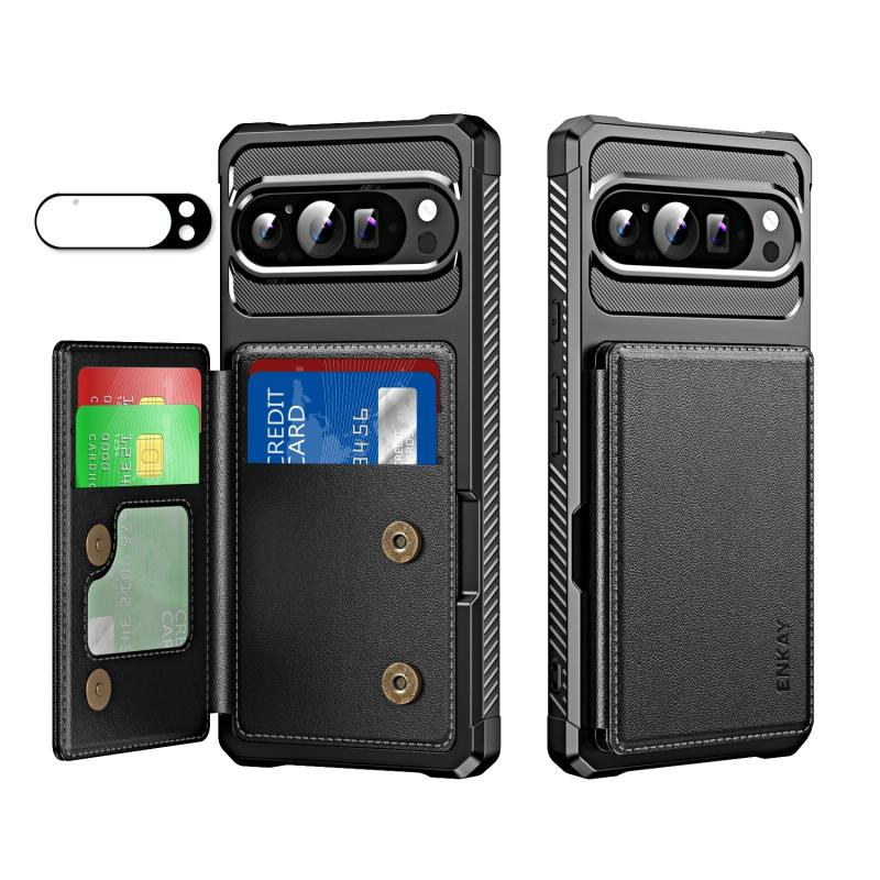 For Google Pixel 9 / 9 Pro ENKAY Hat-Prince Card Slot Wallet TPU Back Leather Phone Case with Lens Film(Black) (ENKAY)