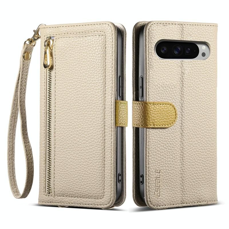 For Google Pixel 9 / 9 Pro ESEBLE E11 Colorful Litchi Pattern Zipper Wallet Leather Phone Case(Khaki) (ESEBLE)